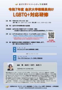 令和7年度 金沢大学教職員向けLGBTQ+対応研修を開催します(1/29)