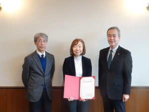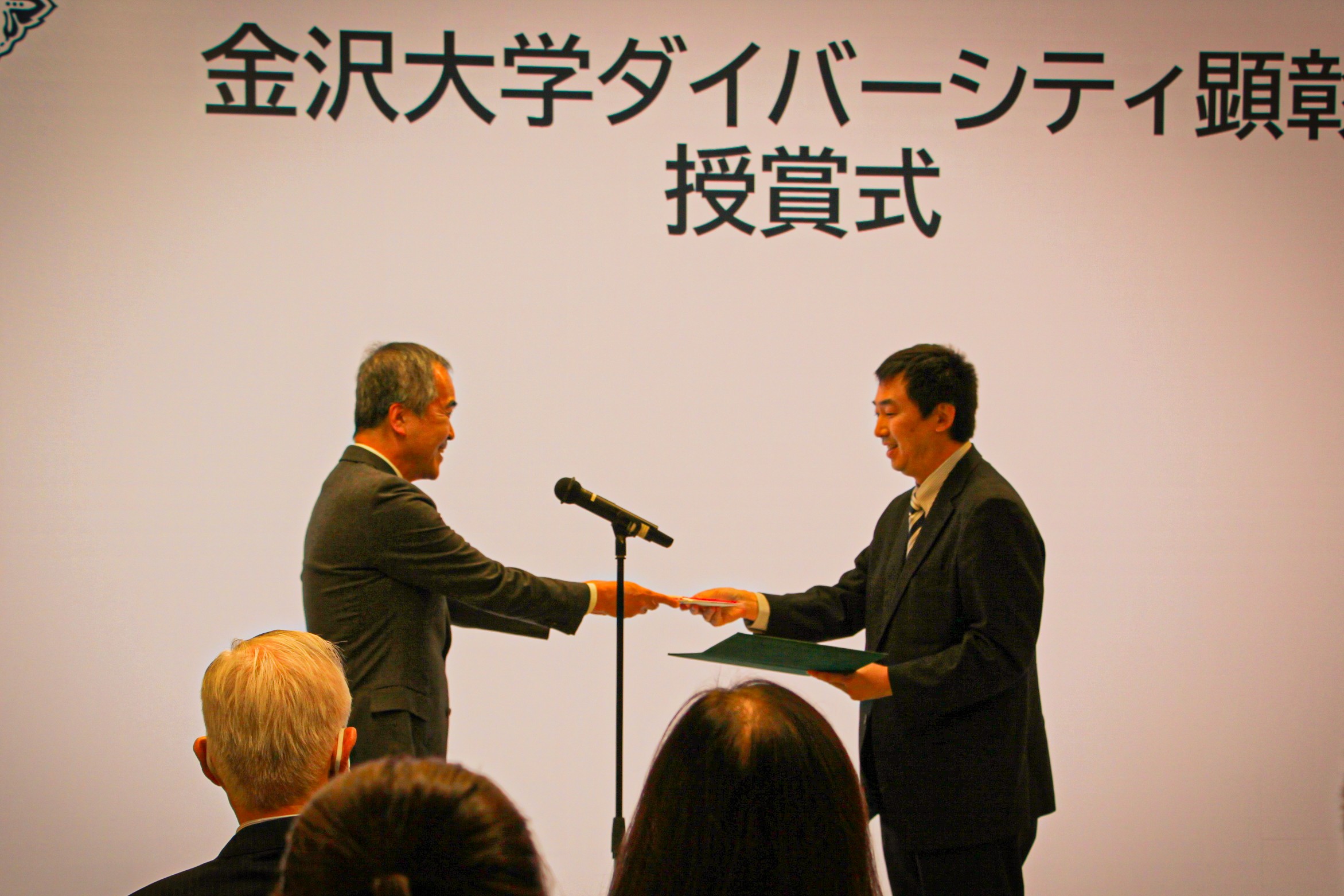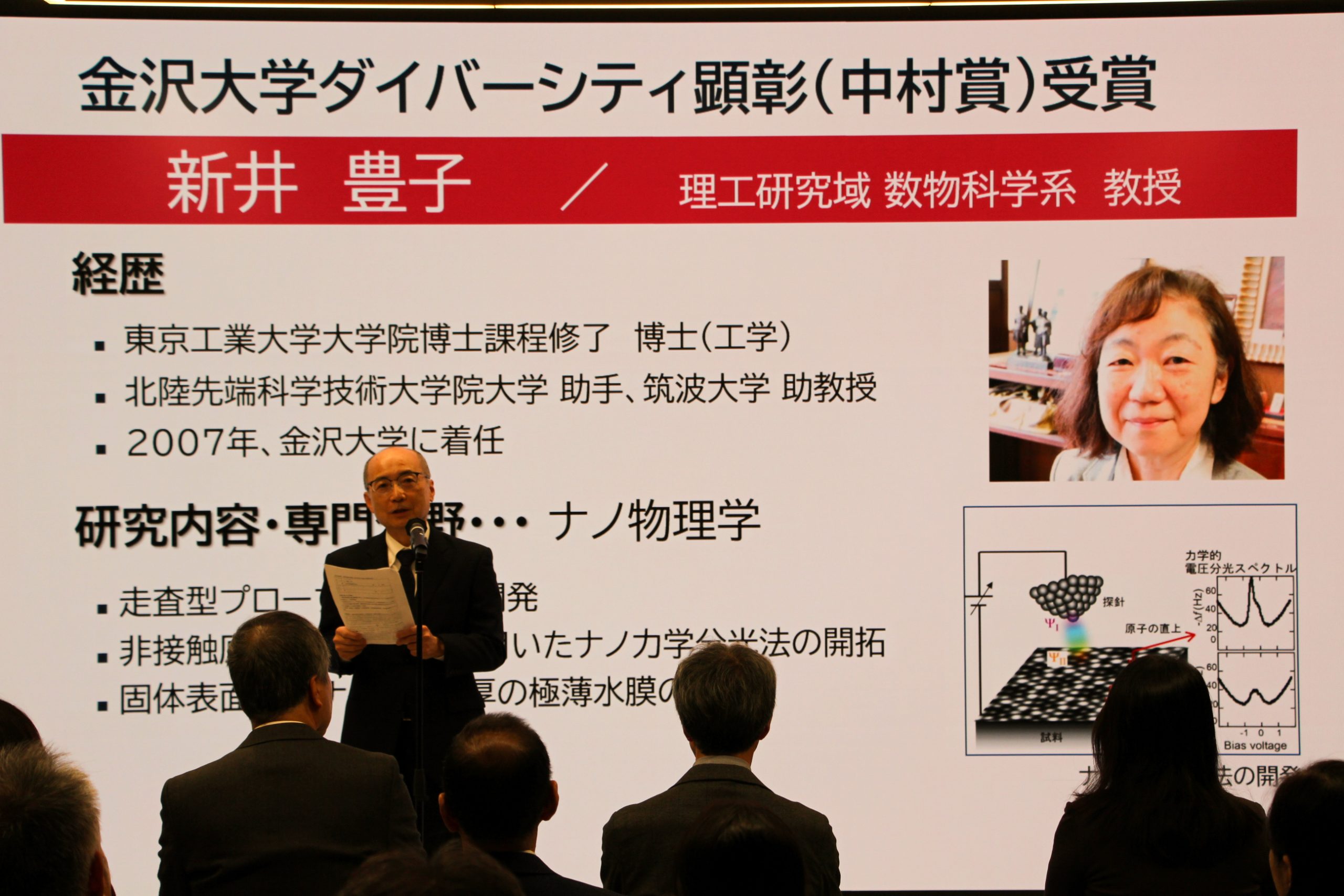 「ダイバーシティ顕彰」は、ダイバーシティ研究環境の形成に貢献した教職員や、優れた研究成果を挙げた女性研究者等を表彰するために創設されたものです。授賞式では受賞者に賞状が授与され、中村賞の寄附者である本学第10代学長・中村信一氏より祝辞が述べられました。